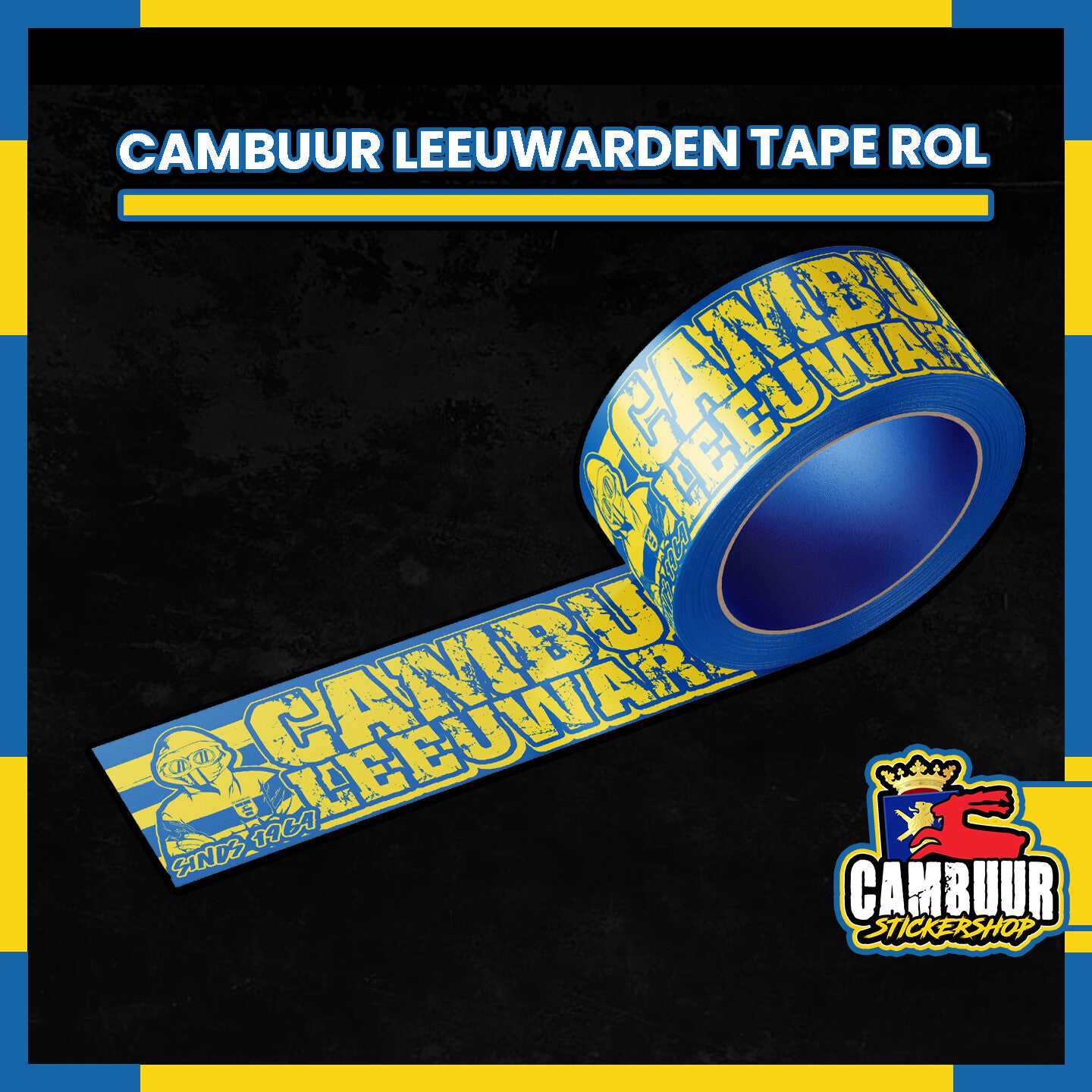 De nieuwe 'Cambuur Leeuwarden' tape rollen zijn 60 meter lang met een duidelijk en opvallend geel-blauw design met de tekst : 'Cambuur Leeuwarden' Met de tape kun je in korte tijd grote oppervlaktes geel blauw laten kleuren. Door de stevige en hoogkwalitatieve lijm & materiaal blijft de tape lang zitten door alle weersomstandigheden.